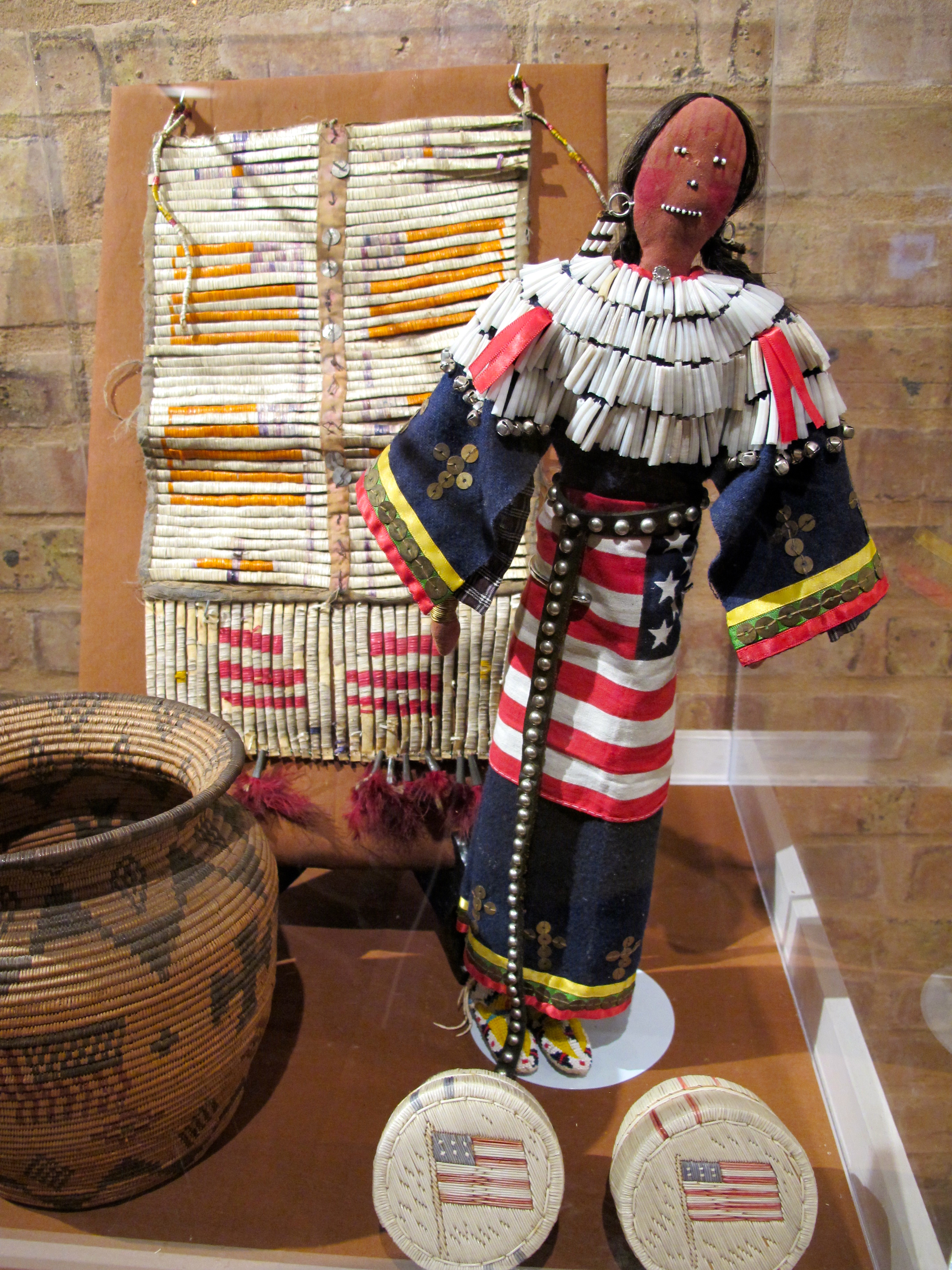 I visited the Mitchell Museum of the American Indian in Evanston, Illinois this week and was surprised to discover amidst the cultural artifacts and ethnographic studies a display case decked out in red, white and blue: