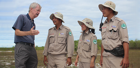 In central Vietnam, US veteran Chuck Searcy (left) discusses bomb disposal with members of Project Renew. (Photo courtesy Project Renew)